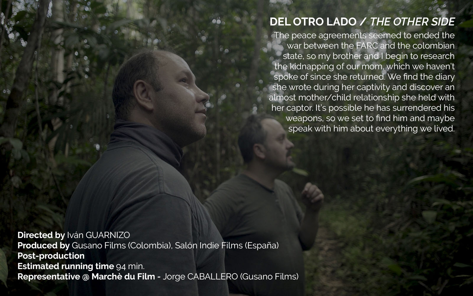 All of the following films were recipients of the FDC-Colombian Film Fund grant in the production category. Now, they are showcased as they are in advanced post production and are searching to premiere and / or find a Sales Agent. The producers of these films are here, so feel free to reach out to them with your inquiries.