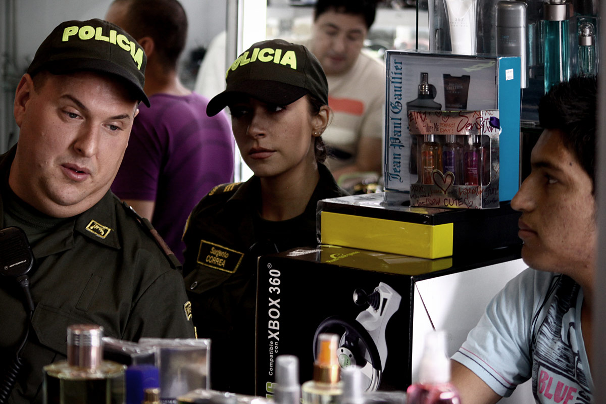 In Sanandresito, a renowned commerce zone in Bogotá, you can find anything: fashion shoes, expensive perfumes, mobile phones, candy and movies. Anything you seek, you will find, as Wilson Tenorio, a spontaneous police officer that works there, can testify. He craves for a promotion in his institution but is not willing to be at pains to do so. Things will change when he’s falsely involved in the murder of Tatiana, a girl from Sanandresito, who is found in the official car driven by Tenorio. The useless agent will need to put into practice what he has “learned” in the police department for the first time in his life: he has to discover the real murderer of Tatiana before he is captured by the police, under Sergeant Fanny—his girlfriend— and before Felix, Tatiana’s boyfriend and a dangerous bodyguard blinded by the pain, finds him and erroneously takes revenge on him. What will happen first?