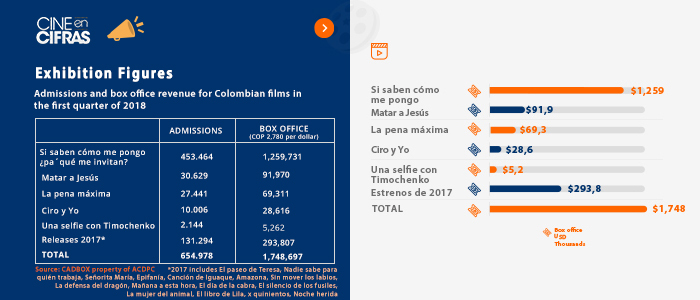 Exhibition FiguresAdmissions and box office earnings in Colombia during the first quarter of 2019