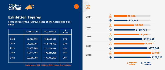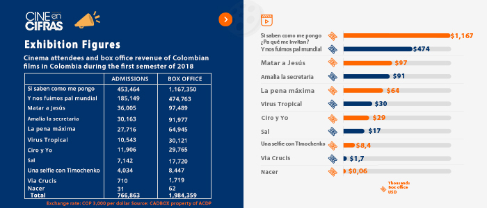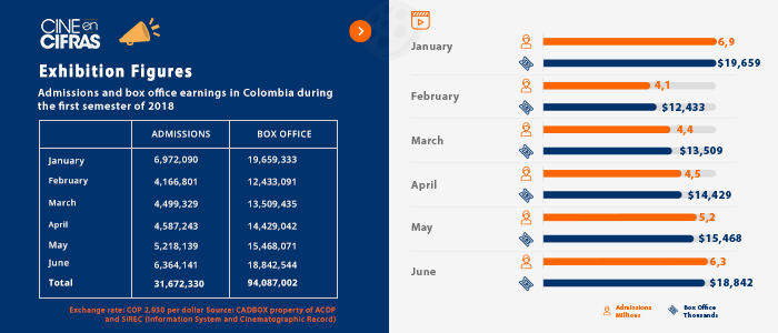 Admissions and box office earnings in Colombia during the first semester of 2018