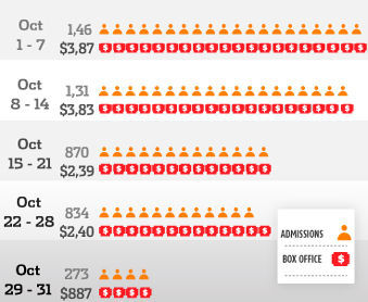 Weekly box office receipts in Colombia during October 2015