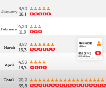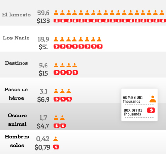 Admissions and box office in Colombia in the first four months of 2016