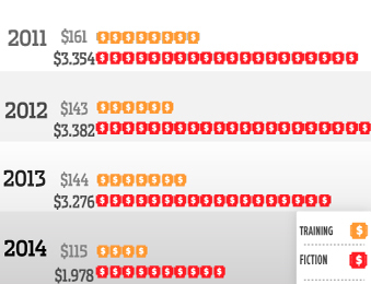 Comparison of the funds provided over the last four years in the Fiction and Training Sections
