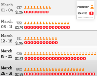 Weekly box office receipts in Colombia during March 2015
