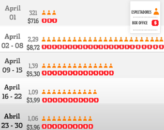Weekly box office receipts in Colombia during April 2015