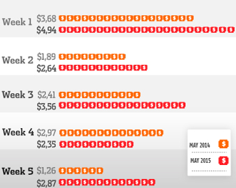Comparison weekly box office receipts in Colombia during May 2015 and May 2014