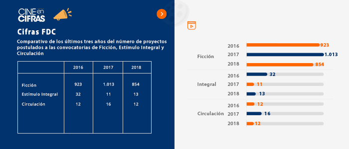 Comparativo de los últimos tres años del número de proyectos postulados a las convocatorias de Ficción, Estímulo Integral y Circulación