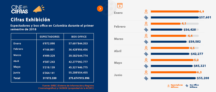 Espectadores y box office en Colombia durante el primer semestre de 2018