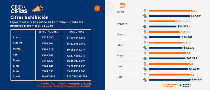 Espectadores y box office en Colombia durante los primeros 7 meses de 2018