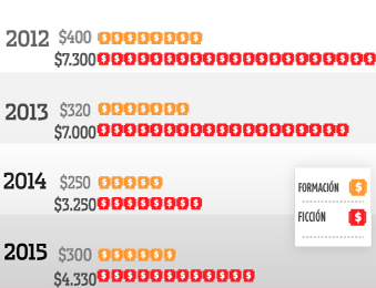 Comparativo de los últimos cuatro años de los recursos asignados en las convocatorias de Ficción y Formación del FDC