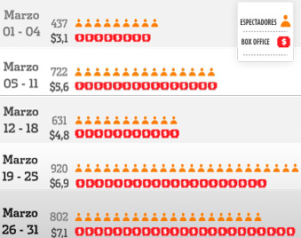 Espectadores y box office en Colombia durante el mes de marzo de 2015