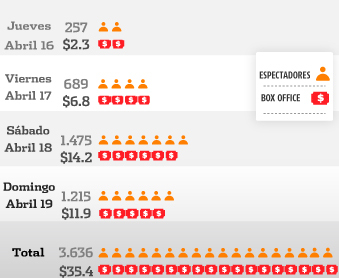 Espectadores y box office de las primeras dos semanas de la película rodada en Colombia, Corazón de León