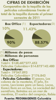 Comparativo de la taquilla de las películas colombianas frente al total de la taquilla durante el primer semestre de 2011