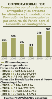 Comparativo por años de los proyectos radicados en los Estímulos por Concurso de las convocatorias del Fondo para el Desarrollo Cinematográfico -FDC-
