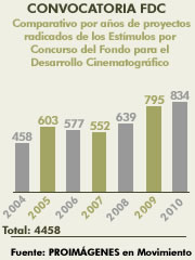 Comparativo por años de proyectos radicados de los Estímulos por Concurso del Fondo para el Desarrollo Cinematográfico -FDC-
