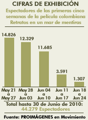 Espectadores de las primeras cinco semanas de la película colombiana Retratos en un mar de mentiras