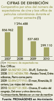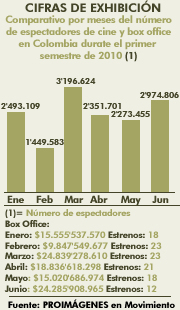 comparativo por meses del número de espectadores de cine y box office en Colombia durante el primer semestre de 2010