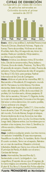 Comparativo por meses de las películas estrenadas en Colombia en el primer semestre de 2010
