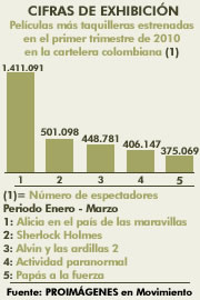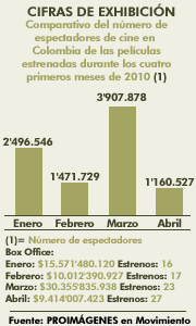 Comparativo de espectadores de cine en Colombia de las películas estrenadas durante los cuatro primeros meses de 2010