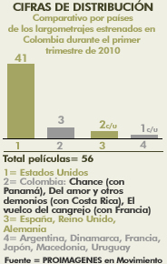 Comparativo por países de los largometrajes estrenados en Colombia durante el primer trimestre de 2010