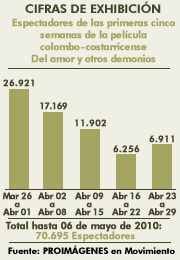 Espectadores de las primeras cinco semanas de la película colombo-costarricense Del amor y otros demonios