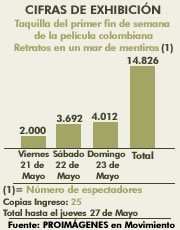 Taquilla del primer fin de semana de la película colombiana Retratos en un mar de mentiras