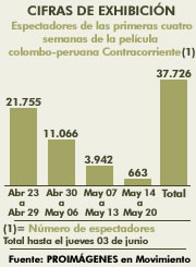 Espectadores de las primeras cuatro semanas de la película colombo-peruana Contracorriente
