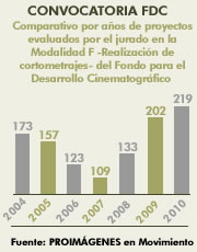 Comparativo por años de proyectos evaluados por el jurado en la modalidad de Realización de Cortometrajes del Fondo para el Desarrollo Cinematográfico -FDC-
