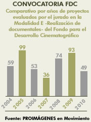Comparativo por años de proyectos evaluados por el jurado en la modalidad de Realización de Documentales del Fondo para el Desarrollo Cinematográfico -FDC-