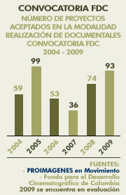 Número de proyectos aceptados, modalidad Realización de Documentales - Convocatoria FDC