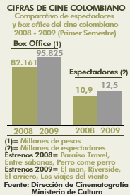 Comparativo de espectadores y box office del cine colombiano 2008 - 2009 (Primer semestre)