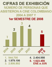 Cifras de exhibición: Número de personas que asistieron a salas de cine en Colombia en el 1er. semestre de 2008