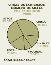 Cifras de Exhibición: Número de sillas de cine en Colombia por exhibidor (sept 2008)