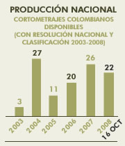 Producción Nacional, Cortometrajes colombianos disponibles (con resolución nacional y clasificación2003-2008)