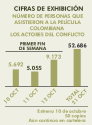 Cifras de exhibición - Número de personas que asistieron a la película colombiana Los actores del conflicto (primer fin de semana y total parcial)