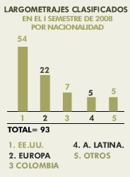 Largometrajes clasificados en el I semestre de 2008 por nacionalidad
