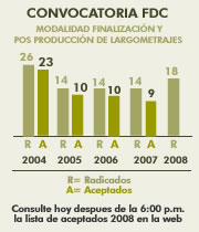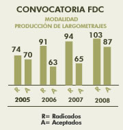Convocatoria FDC, número de proyectos radicados de cortometraje 2004 - 2008