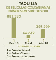 Estadistica 363 - Taquilla de peliculas colombianas promer semestre de 2008