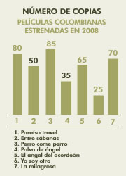 Número de copias de películas colombianas estrenadas en 2008 (hasta 22 de agosto)